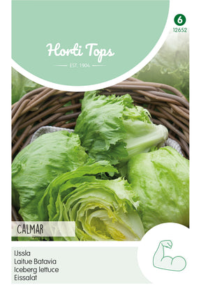 Eissalat - Calmar Eine Profizüchtung, die ab Mai bis Oktober geerntet werden kann; Mehltauresistenz NL 1-16. Februar-März unter Glas ins Frühbeet, ab Mitte März bis Anfang August draußen in Reihen.