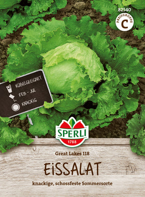 Der Salat 'Great Lakes 118' ist ein schossfester Sommer-Eissalat. Er kann entweder im März und April vorkultiviert oder im Zeitraum von April bis August ins Freiland ausgesät werden. Im Falle einer Vorkultur werden die Jungpflanzen ca. Mitte Mai ins frostfreie Freiland gesetzt. Ein humoser, nährstoffreicher Boden und kontinuierliche Feuchtigkeit ist für eine gelingsichere Anzucht ideal. Je nach Aussaatzeitpunkt können die Salatpflanzen von Juni bis September geerntet werden. Die Blätter sind knackig, schmackhaft und für verschiedenste verwendbar.