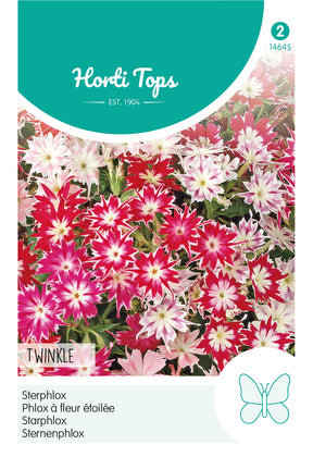 Sternenphlox - Twinkle Mischung Mitte März bis Mitte April unter Glas oder Mitte April bis Ende Mai in Reihen und ausdehnen auf 15 cm. Wunderschön für Beete, Rabatten, aber auch sehr geeignet zum Schnitt. Schmetterlingspflanze.