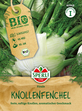 Der BIO-Knollenfenchel 'Finale' von SPERLI ist eine schossfeste Sorte, die feste, saftige Knollen mit einem sehr aromatischen Geschmack entwickelt. Die Aussaat der BIO-Samen ist von März bis Juli möglich, zunächst als Vorkultur und ab Mai auch als Direktsaat. Ein tiefgründiger Boden und sonniger Standort sowie ausreichende Wasser- und Düngergaben sorgen für optimale Anbaubedingungen. Wenn die Knollen im Zeitraum von Juni bis Oktober erntereif sind, eignen sie sich sowohl für den Rohverzehr als auch zum Kochen und Grillen. Selbst das aufrecht wachsende Laub kann gegessen werden und ist sehr gesund.