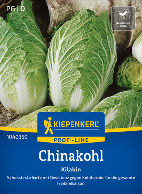 Der Chinakohl ‘Kilakin‘ bildet zylindrische, dunkelgrüne, innen gelb gefärbte Köpfe. Eine schossfeste Sorte mit Resistenz gegen Kohlhernie für die Sommer- und Herbsternte. Um Schosser bei frühen Sätzen zu vermeiden, bei der Anzucht Temperaturen von mindestens 15 °C einhalten.