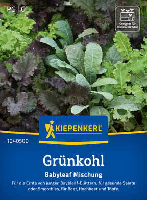 Die 'Babyleaf-Grünkohl Mischung' besteht aus raschwüchsigen grünen, violetten und schwarzgrünen Sorten. Die Ernte der jungen, vitaminreichen Blätter erfolgt bereits 5-7 Wochen nach der Aussaat. Verwendung roh in Salaten oder für Smoothies, als Wokgemüse oder kurz gedünstet als Blattgemüse. Geeignet für Beete, Hochbeete, Kästen und Töpfe.