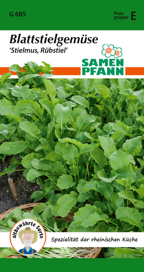 Brassica rapa Blattstielgemüse ’Stielmus, Rübstiel’ Stielmus (Rübstiel) ist ein sehr schmackhaftes, zartes, schnell wachsendes Gemüse für Frühjahr und Herbst. Stielmus ist eine besondere Art der Speiserübe. Gegessen werden die jungen Blattstiele und Blätter gekocht, gedünstet oder als Salat. Anbau im Freiland und im Gewächshaus möglich.