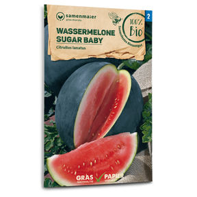 Sorte mit saftigen, süßen und rotfleischigen Früchten. Pflanzung in vollsonniger, geschützter Lage (vorteilhaft: Frühbeet oder Pflanzung auf schwarzer Mulchfolie).