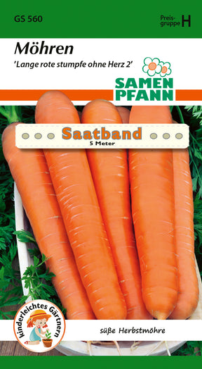 Samen Pfann Möhre Lange rote stumpfe ohne Herz 2 Saatband