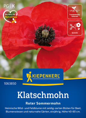 Der Klatschmohn 'Roter Sommermohn' mit seinen seidigen, feuerroten Blüten gehört zu den beliebtesten Wildblumen. Die Blüten sind ein Magnet für Insekten und können, im Knospenstadium geschnitten, auch für die Vase verwendet werden. Auch die Fruchtstände werden in der Floristik verwendet. Der Verzehr kann zu gesundheitlichen Komplikationen führen.