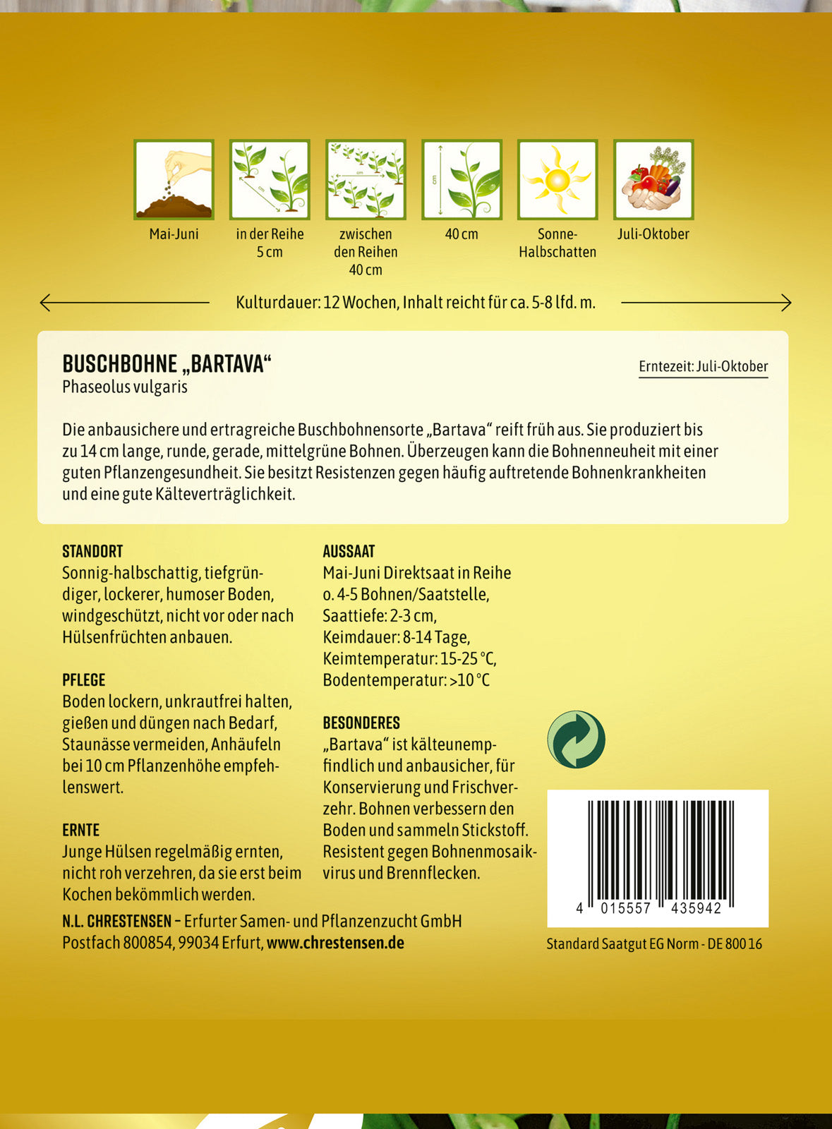 N.L. Chrestensen Buschbohne Bartava ist nicht auf Lager und wird versandt, sobald es wieder verfügbar ist