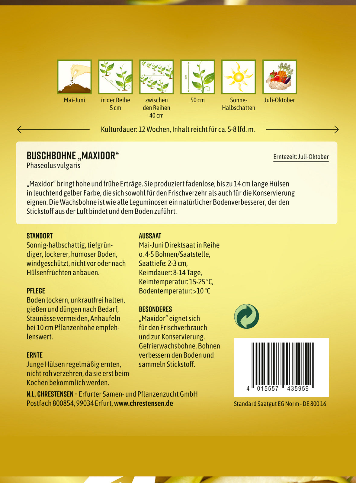N.L. Chrestensen Buschbohne Maxidor ist nicht auf Lager und wird versandt, sobald es wieder verfügbar ist