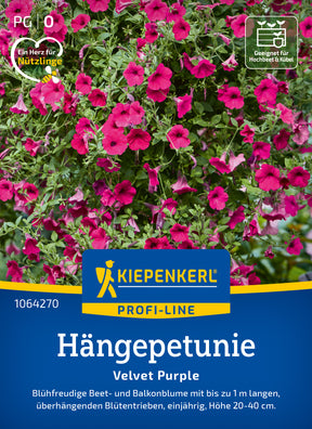 Die Hängepetunie 'Velvet Purple' ist wüchsig mit überhängend wachsenden, langen, gut verzweigten Blütentrieben. Ideal für Kästen, Ampeln und auch bodendeckend wachsend, fürs Beet. 'Velvet Purple' hat eine lange Blütezeit und erholt sich rasch nach Schlechtwetterperioden.