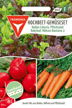 Frankonia Samen Gemüsesamen-Mischungen Radies Celesta, Pflücksalat Babyleaf, Möhren Nantaise 2 Saatband