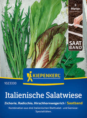 Die 'Italienische Salatwiese' besteht aus dem roten Radicchio 'Palla Rossa 3', der grünen Blatt-Zichorie 'Biondissima di Trieste' und dem gefiedertem Hirschhornwegerich 'Erba Stella'. Die jungen, fein bitteren Blätter werden für Misticanza-Salat verwendet, ältere Blätter können als Blattgemüse gedünstet werden. Nach 6-8 Wochen können die ersten Blätter geerntet werden. Lässt man das Herz stehen, ist mehrfache Ernte möglich.