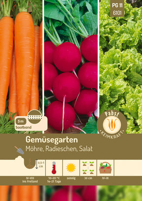 Pabst Keimkraft Gemüse-Mischungen Radieschen Celesta, Schnittsalat Australische Gele, Möhren Nantaise 2 Saatband