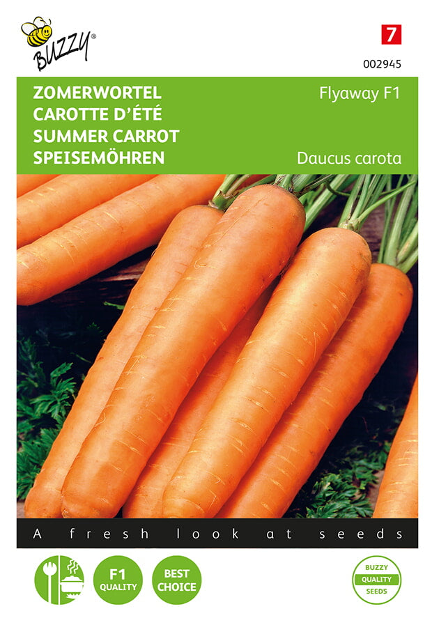 Möhre - Flyaway F1 Ab Mitte März bis Anfang Juli ins Freiland in Reihen einsäen. Dünn aussäen und später etwas auslichten. Die Sorte Flyaway ist besonders widerstandsfähig gegen Maden der Möhrenfliege.