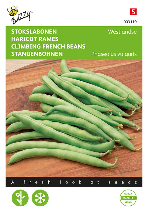 Stangenbohnen - Westländer Ab Mitte Mai bis Juli im Freien. Am einfachsten lassen sie sich an Bambusstöcken in Reihen anbauen. Westlandse ist eine sehr reichtragende doppelte Stangensalatbohne. Die starken Pflanzen bilden robuste Rispenbohnen mit sehr gutem Geschmack. Diese Bohnen eignen sich ausgezeichnet für die Lagerung in der Tiefkühltruhe.