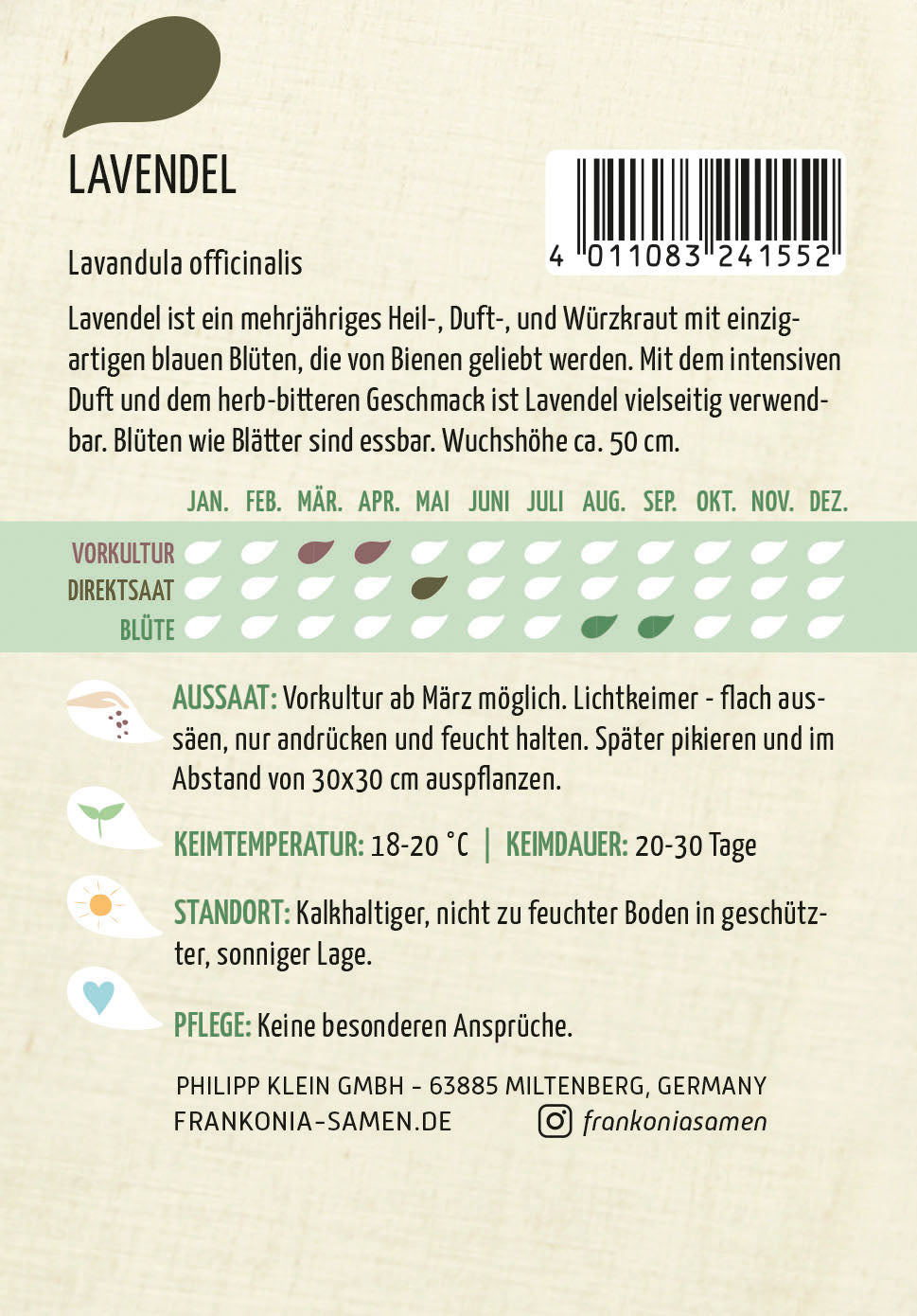 Frankonia Samen Lavendel ist nicht auf Lager und wird versandt, sobald es wieder verfügbar ist