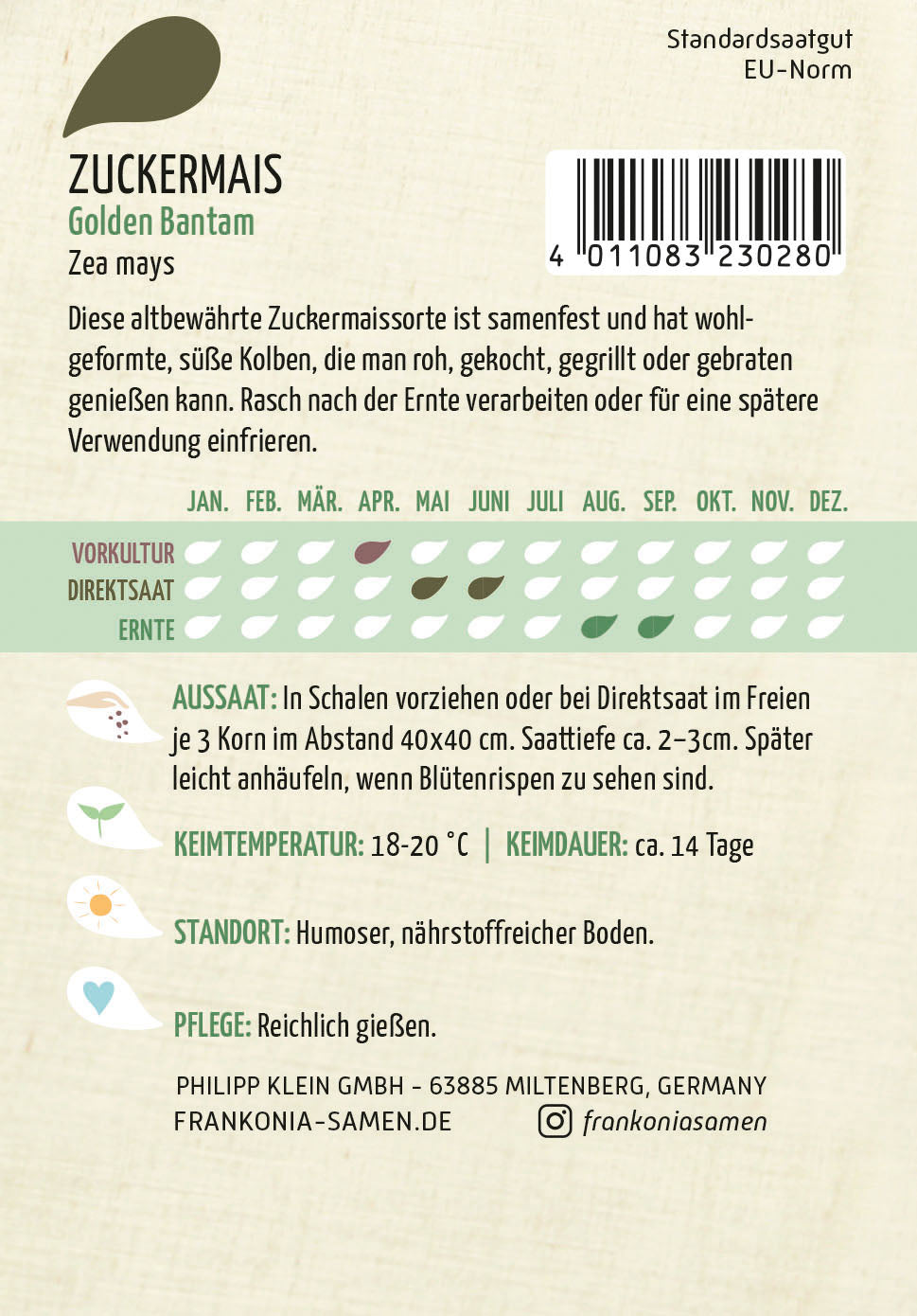 Frankonia Samen Mais Golden Bantam ist nicht auf Lager und wird versandt, sobald es wieder verfügbar ist