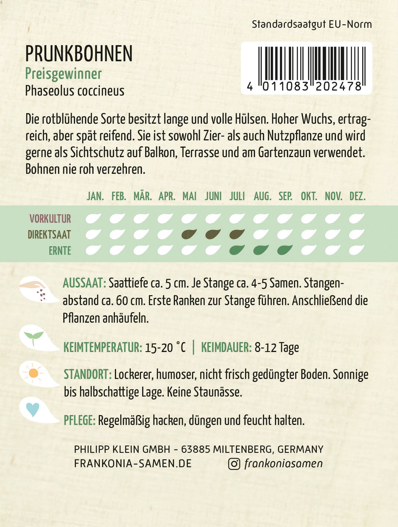 Frankonia Samen Prunkbohnen Preisgewinner ist nicht auf Lager und wird versandt, sobald es wieder verfügbar ist