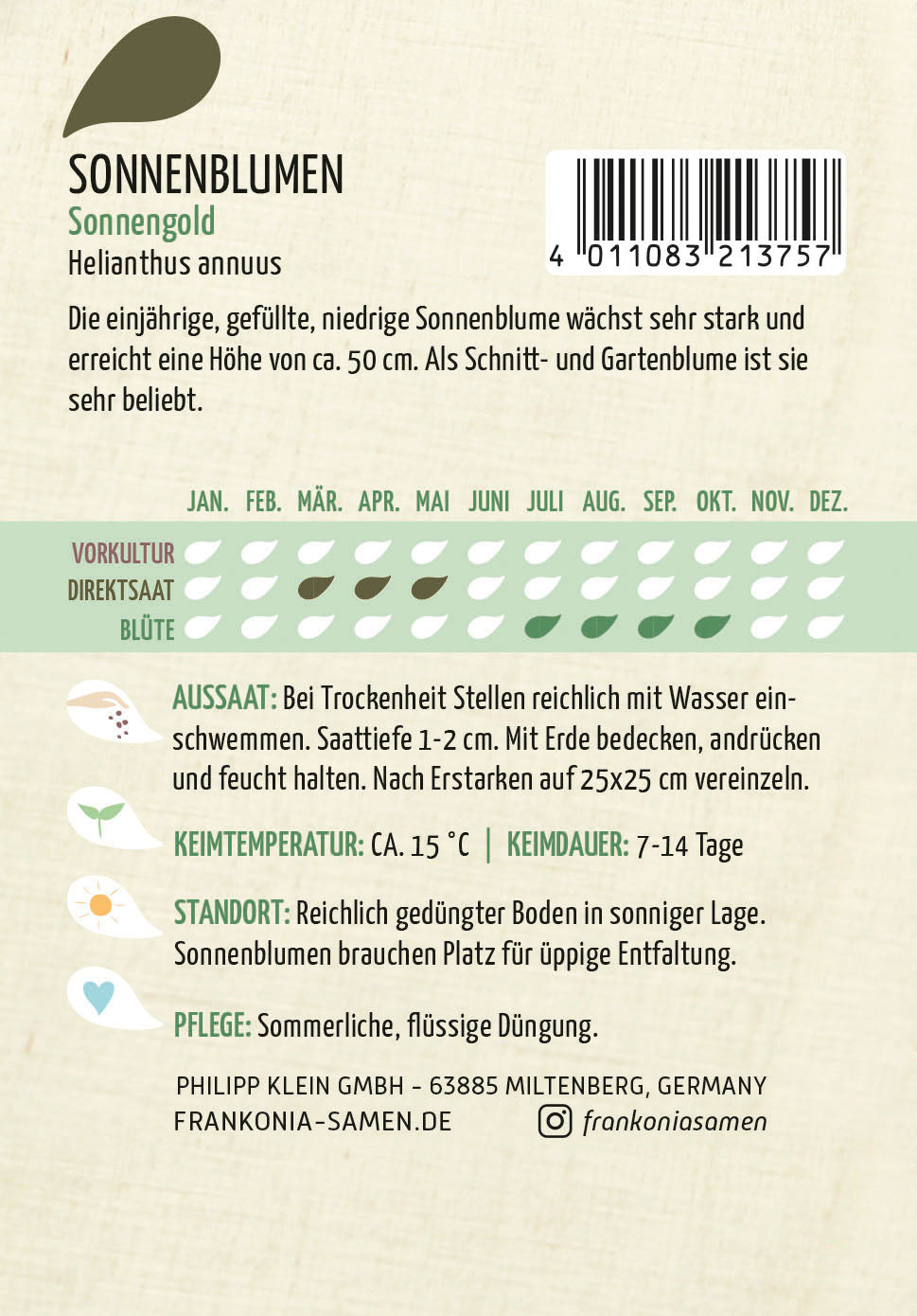 Frankonia Samen Sonnenblumen Sonnengold ist nicht auf Lager und wird versandt, sobald es wieder verfügbar ist