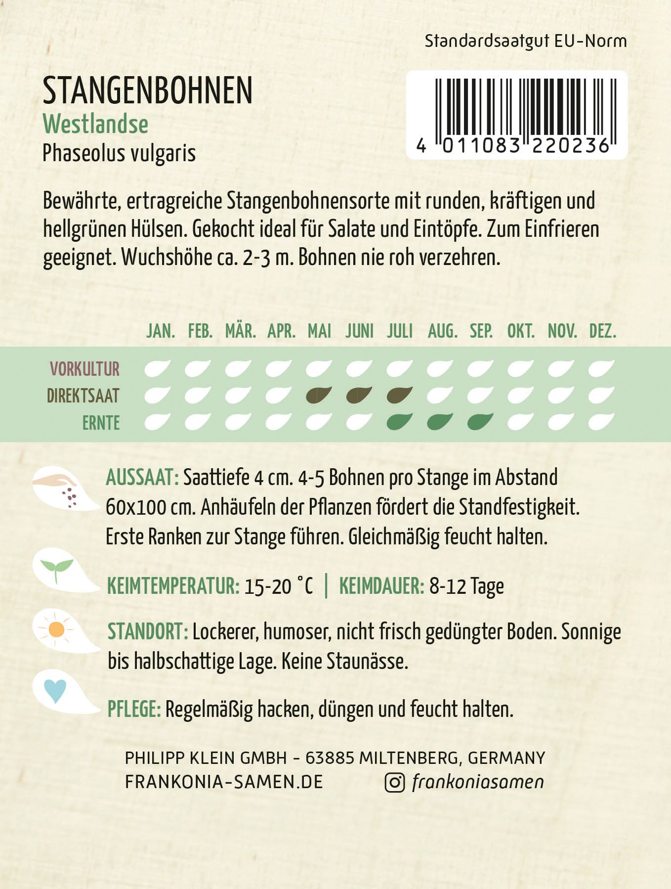 Frankonia Samen Stangenbohnen Westlandse ist nicht auf Lager und wird versandt, sobald es wieder verfügbar ist