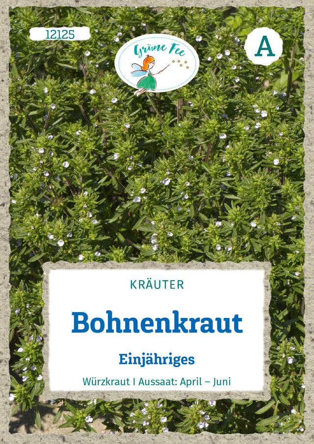 Einjährig, Würzkraut für Hülsenfrüchte mit pfefferartigem Geschmack, zum Tiefgefrieren geeignet, hilft gegen die schwarze Bohnenlaus