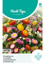 Trockenblumen Mischung Mitte März-Mitte April unter Glas oder Mitte April-Mitte Mai ins Saatbeet und nachher auspflanzen an Ort und Stelle. Die Blumen werden geschnitten, bevor sie in voller Blüte stehen, und an einem dunklen Platz aufgehängt und getrocknet.