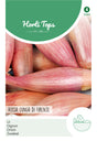 Zwiebel - Rossa lunga di Firenze Anfang März bis Ende April ins Freiland einsäen in Reihen und etwas auslichten. Sie liebt die Sonne und nicht zu feuchten Boden. Diese lange rote italienische Zwiebel, angenehm zart und mild schmeckend, lässt sich vielseitig frisch verwenden in Salaten. Hortitops Special Edition.