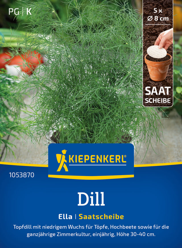 Einen Topf mit Kräuter- oder Anzuchterde füllen, die Saatscheibe darin auslegen, gut angießen, dünn mit Erde abdecken und nochmals leicht gießen. Dann bis zur Keimung gleichmäßig feucht halten. Vereinzeln ist nicht notwendig. Die Saatscheiben sind ideal für die Anzucht von Topf-Dill im Freien oder ganzjährig im Zimmer, können aber auch ins Hoch- oder Gartenbeet ausgelegt werden.