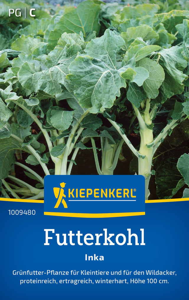 Der Futterkohl 'Inka', auch Markstammkohl genannt, ist eine Grünfutter-Pflanze für Kleintiere und für den Wildacker. Diese winterharte, blattreiche und hoch strunkrige Viehfutterpflanze verträgt Fröste bis -15°C und ist den ganzen Winter über pflückbar.