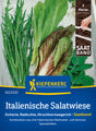 Die 'Italienische Salatwiese' besteht aus dem roten Radicchio 'Palla Rossa 3', der grünen Blatt-Zichorie 'Biondissima di Trieste' und dem gefiedertem Hirschhornwegerich 'Erba Stella'. Die jungen, fein bitteren Blätter werden für Misticanza-Salat verwendet, ältere Blätter können als Blattgemüse gedünstet werden. Nach 6-8 Wochen können die ersten Blätter geerntet werden. Lässt man das Herz stehen, ist mehrfache Ernte möglich.