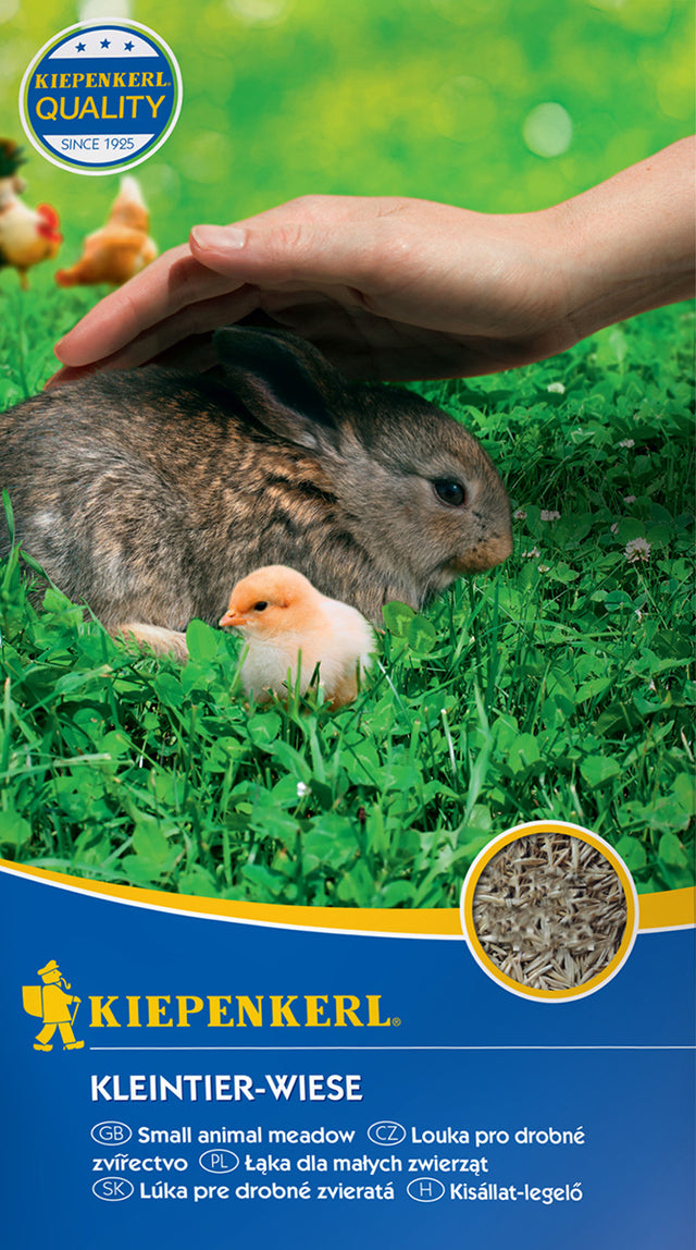 Wer seinen Kleintieren in freien Ausläufen eine ganzjährige Futterquelle bieten möchte, findet in der Kiepenkerl Kleintier-Wiese ein passendes Produkt. Die ideal für Kleintiergehege geeignete Mischung liefert Tieren wie Gänsen, Hühnern, Hasen, Kaninchen, Schildkröten, Meerschweinchen und anderen Kleintieren gesundes Frischfutter. Enthalten sind vielfältige landwirtschaftliche Futtergräser und säurearme Weißkleearten. Somit ist diese proteinreiche Mischung genau auf die Bedürfnisse von zahlreichen Haus- und Nutztieren abgestimmt. Zusätzlich kann in den Sommermonaten das Wiesengras für Winterfutter geheut werden. Neben der Nutzung als Nahrungsquelle wird durch die Aussaat der Kleintier-Wiese ein toller, tiergerechter Lebensraum geschaffen, in dem sich Nutz- und Haustiere sehr wohl fühlen. Die winterharte Mischung ist für eine mehrjährige Nutzung an sonnigen bis halbschattigen Standorten geeignet. 10 kg der Mischung reicht für die Aussaat einer Fläche von insgesamt 400 m².