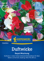 Die Duftwicken Royal Mischung bilden intensiv duftende Blüten in vielen Farben. Geeignet zum Begrünen von Zäunen und Rankhilfen im Beet und im Kübel. Die Blüten sind auch für die Vase geeignet. Schnittreife bei 1-2 offenen Blüten pro Stiel. Der Verzehr kann zu gesundheitlichen Komplikationen führen.