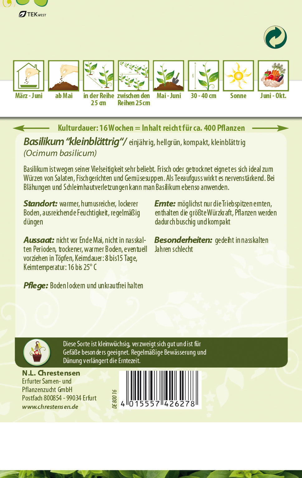 N.L. Chrestensen Basilikum kleinblättrig ist nicht auf Lager und wird versandt, sobald es wieder verfügbar ist