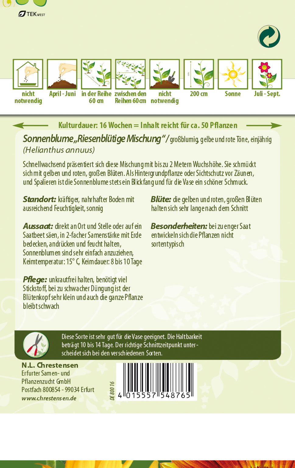 N.L. Chrestensen Sonnenblumen Riesenblütige Mischung
