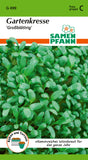 Lepidium sativum Gartenkresse ’Großblättrig’ Frisches, vitaminreiches, aromatisches Würzkraut für den ganzjährigen Anbau. Gartenkresse wird im frischen Zustand verwendet, für Salate, Quark, zum Garnieren oder einfach nur auf’s Butterbrot. Besonders beliebt in den Wintermonaten auf der Fensterbank.