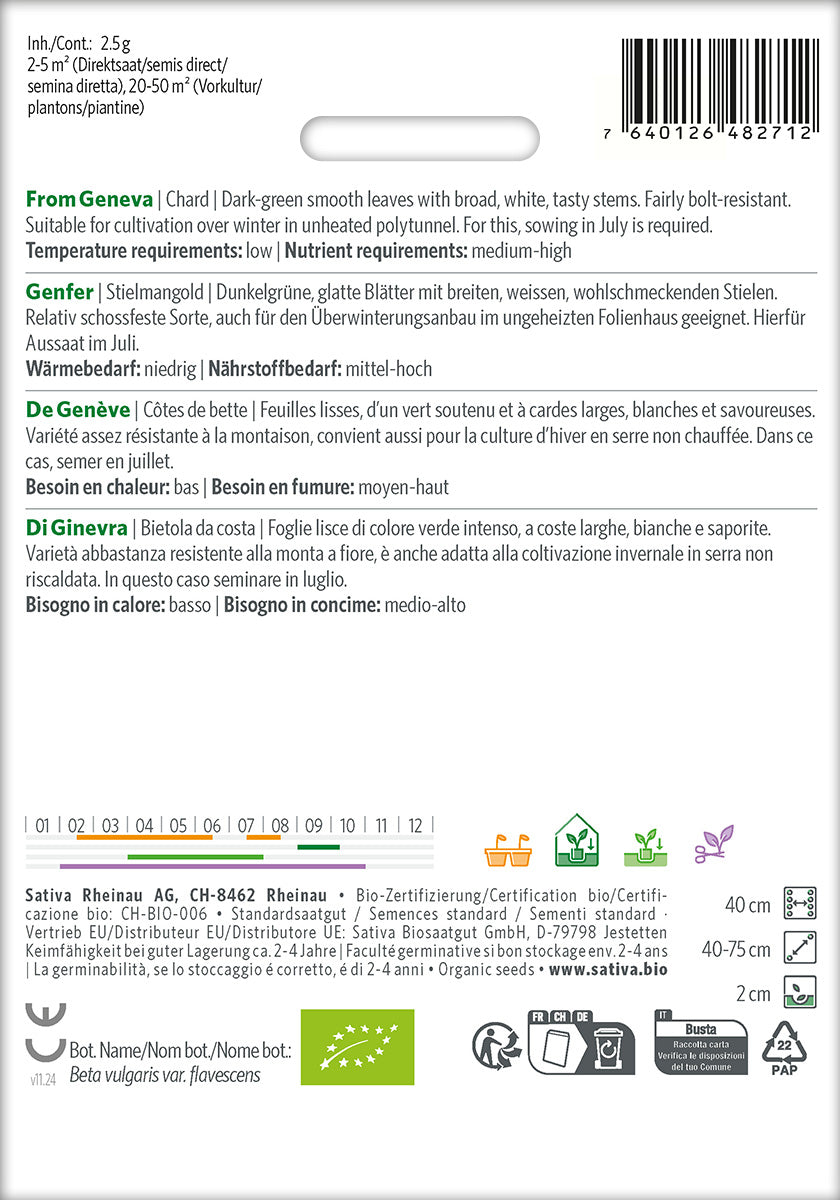 Sativa Stielmangold Genfer ist nicht auf Lager und wird versandt, sobald es wieder verfügbar ist
