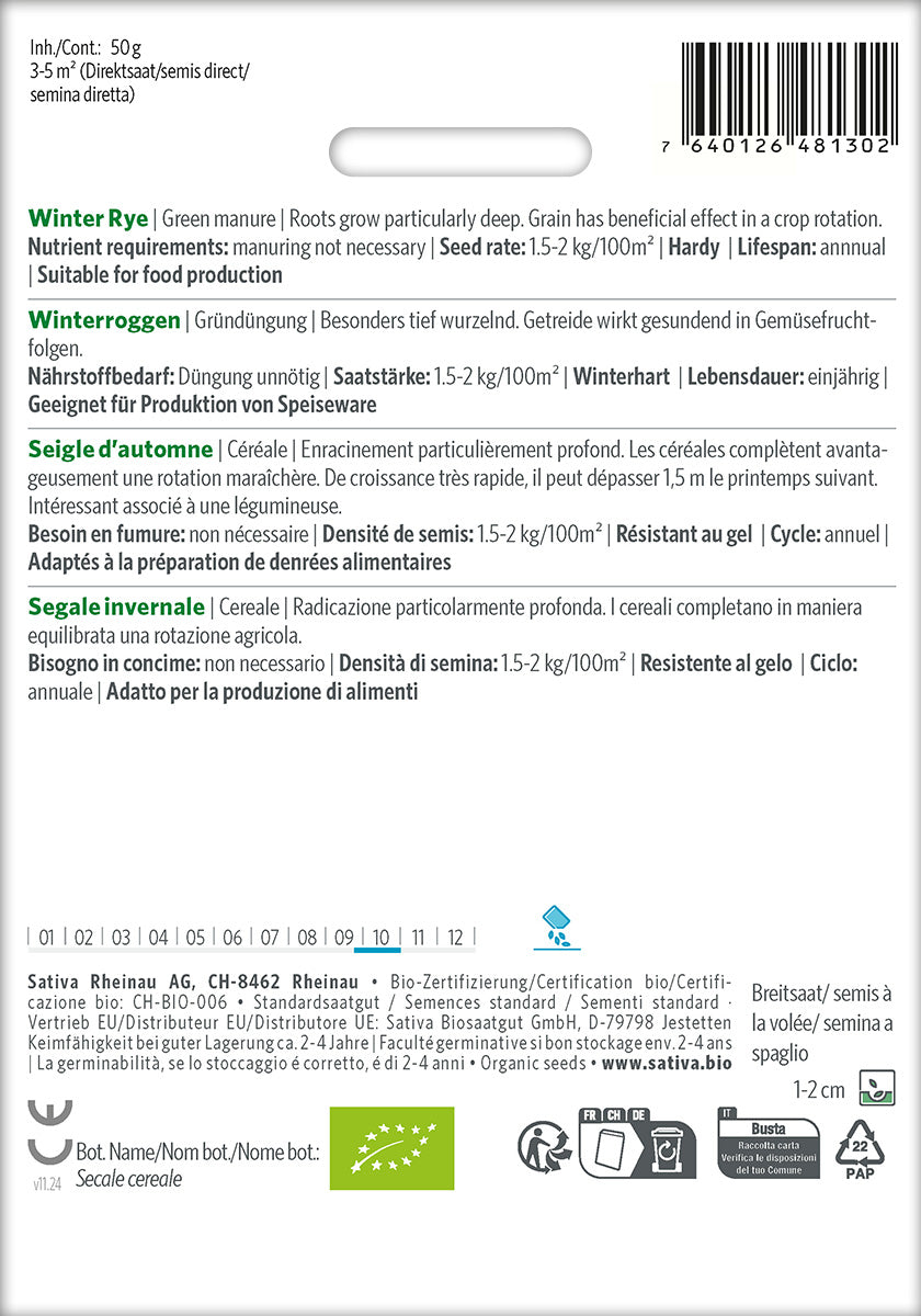Sativa BIO Gründüngung Winterroggen ist nicht auf Lager und wird versandt, sobald es wieder verfügbar ist