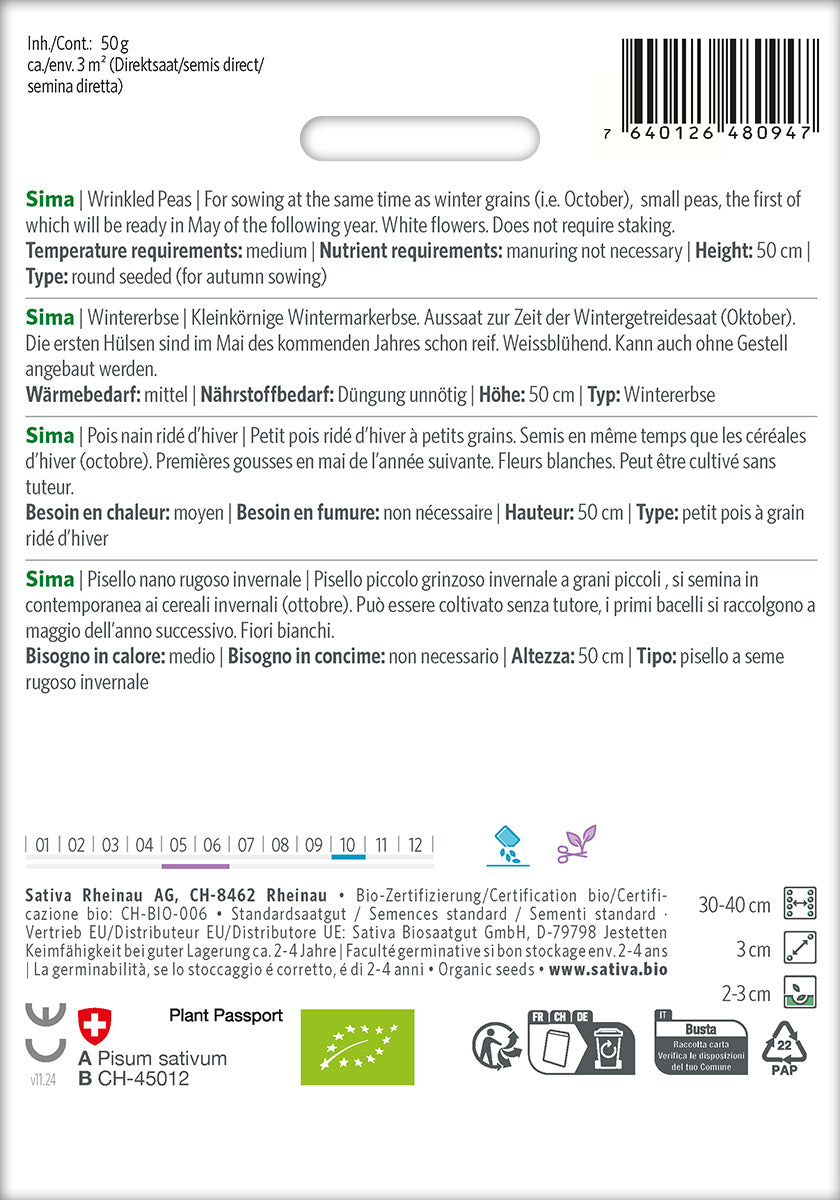 Sativa Wintererbse Sima ist nicht auf Lager und wird versandt, sobald es wieder verfügbar ist