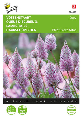 Haarschöpfchen - Joey Von Februar bis Mai drinnen in einer Saatschale aussäen und ab Mai in einen Topf oder ins Beet auspflanzen. Die herrlich silber-rosafarbenen Blütenrispen erinnern an Fuchsschwänze und sehen sowohl im Beet als auch im Terrassentopf toll aus. Achtung! Sie mögen keinen nassen Boden.