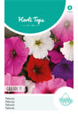 Petunie - Cascade F1 Mischung Ab Mitte Februar bis Mitte April in Schalen oder Kasten bei ca. 20ºC, oder Anfang April bis Mai unter Glas. Auspflanzen Anfang Mai. Sehr dekorativ für Ampeln und, natürlich, auch hervorragende Beet- und Balkonpflanze.