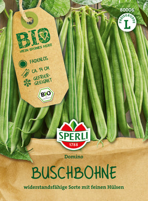 Die feine BIO Buschbohne hat schmackhaften Bohnen und feine Hülsen, die sich gut zum Einfrieren eignen. Dadurch hast Du auch in den kälteren Monaten leckere Bohnen aus dem eigenen Anbau zur Verfügung. Die Erntezeit der BIO Buschbohne beginnt ab Juli. Sie gilt als ertragreiche und zudem sehr widerstandsfähige Sorte. Die Hülsen erreichen eine Länge von bis zu 13 cm. Außerdem sind sie fadenlos, sodass das Essen der Bohnen ganz ohne störende Fäden erfolgen kann. Hinzu kommt ihr hervorragender Geschmack.