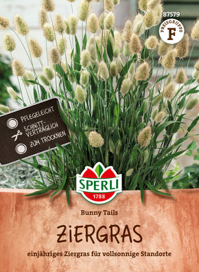 Das kurzwüchsige Ziergras 'Bunny Tails' wird ca. 15 bis 20 cm hoch. Die vielen Blütenbällchen erinnern an Hasenschwänzchen. Das einjährige Ziergras kann als Schnittblume verwendet werden. Außerdem sieht 'Bunny Tails' sehr schön in Trockensträußen aus. Das pflegeleichte Ziergras kann als Vorkultur oder direkt ausgesät werden. Der beste Zeitraum für die Vorkultur ist von April bis Mai. Soll das Ziergras direkt ausgesät werden, erfolgt die Aussaat im Mai oder Juni. Da das Ziergras sehr kompakt wächst, kann es in Pflanzgefäßen ausgesät werden. 'Bunny Tails' hat eine sehr lange Blütezeit. Die Blütenbällchen erscheinen von Mai bis Ende Oktober.